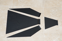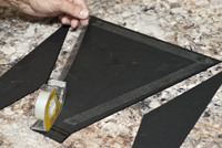 | I'll use several one inch pieces of tape to hold all the pieces together to get a feel if my parts will fit properly. Now I remove all tap flatten out each part and apply two sided tape. |