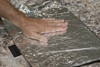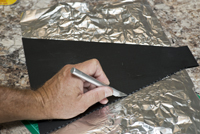 | I like to use aluminum foil for my reflector material. I'll first cripple it just a little so light emitting from the my flash will distribute more evenly. Than lay on the glue/tape and smooth out. |