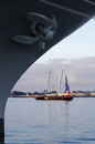 Find objects that can frame your scene. Most often I find over-hanging tree branches that can used. This is especially useful when the sky is overcast or bland. The example to the left uses the bow of a larger ship to frame the sail boat.